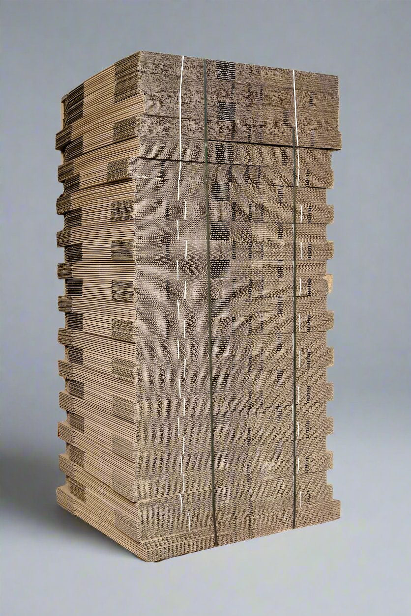 - Materiale: Kraftig optimeret bølgepap (4 mm) for maksimal styrke